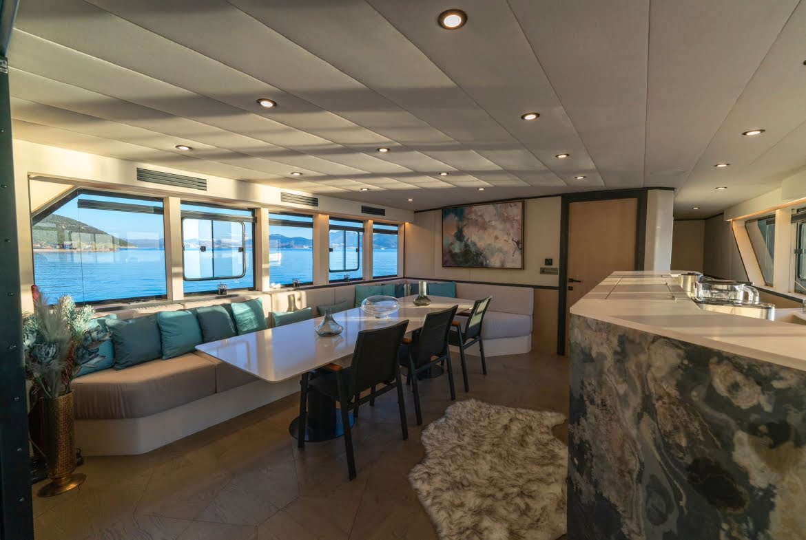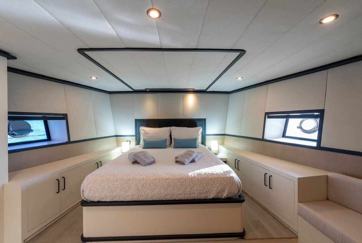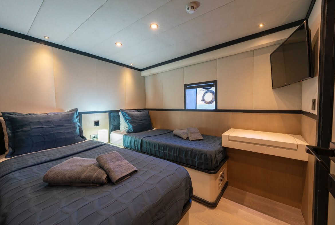 L’équipage expérimenté de “Calm Down” se compose d’un capitaine compétent, d’un chef talentueux, de deux marins et de deux hôtesses dévoués à vous offrir un excellent service et à garantir votre confort et votre satisfaction tout au long de votre voyage. Avec son design contemporain, ses cabines luxueuses et son équipage professionnel, “Calm Down” offre une expérience vraiment mémorable et indulgente. Que vous recherchiez la détente, l’aventure ou une combinaison parfaite des deux, ce Chalutier de luxe est le choix idéal pour vos besoins de croisière. Mettez les voiles sur “Calm Down” et plongez dans l’expérience ultime du Chalutier de luxe, où un service exceptionnel et un confort moderne créent une escapade sans faille et inoubliable.