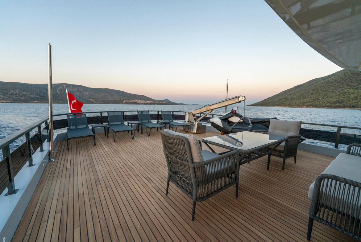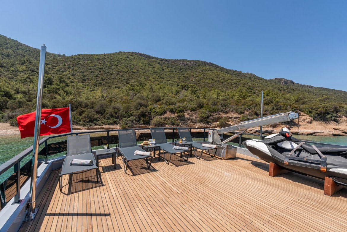 Parmi elles, deux cabines principales, deux cabines VIP doubles et deux cabines doubles, toutes équipées de la climatisation 24 heures sur 24, garantissant un séjour agréable et confortable à bord. Lors de votre croisière bleue exquise, offrez-vous une gamme d’installations pour les sports nautiques qui promettent excitation et plaisir. Que vous préfériez la plongée en apnée, le jet ski ou toute autre activité nautique, “Calm Down” a tout prévu, garantissant un voyage inoubliable rempli d’aventures. Partant de ports pittoresques tels que Bodrum, Marmaris, Göcek ou Fethiye, vous avez l’opportunité d’explorer les baies à couper le souffle et les côtes envoûtantes de la province de Mugla.
